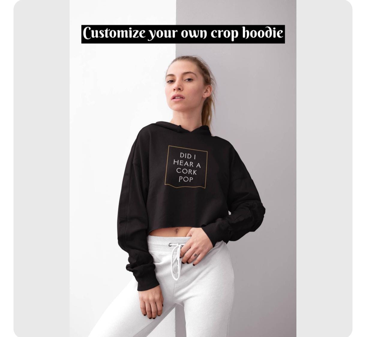 1-) Please check all photos listed above, crop hoodie, fonts, colors.