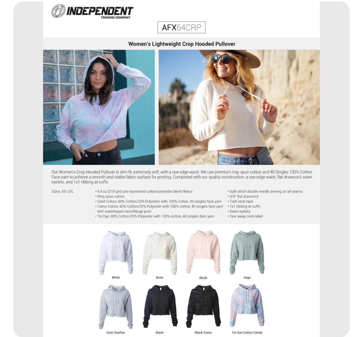 🌟 Size charts are located above. Independent Trading chart is Bone, Black, White, Blush, Black Camo, Light Heather Gray, Cotton Candy, Sage.