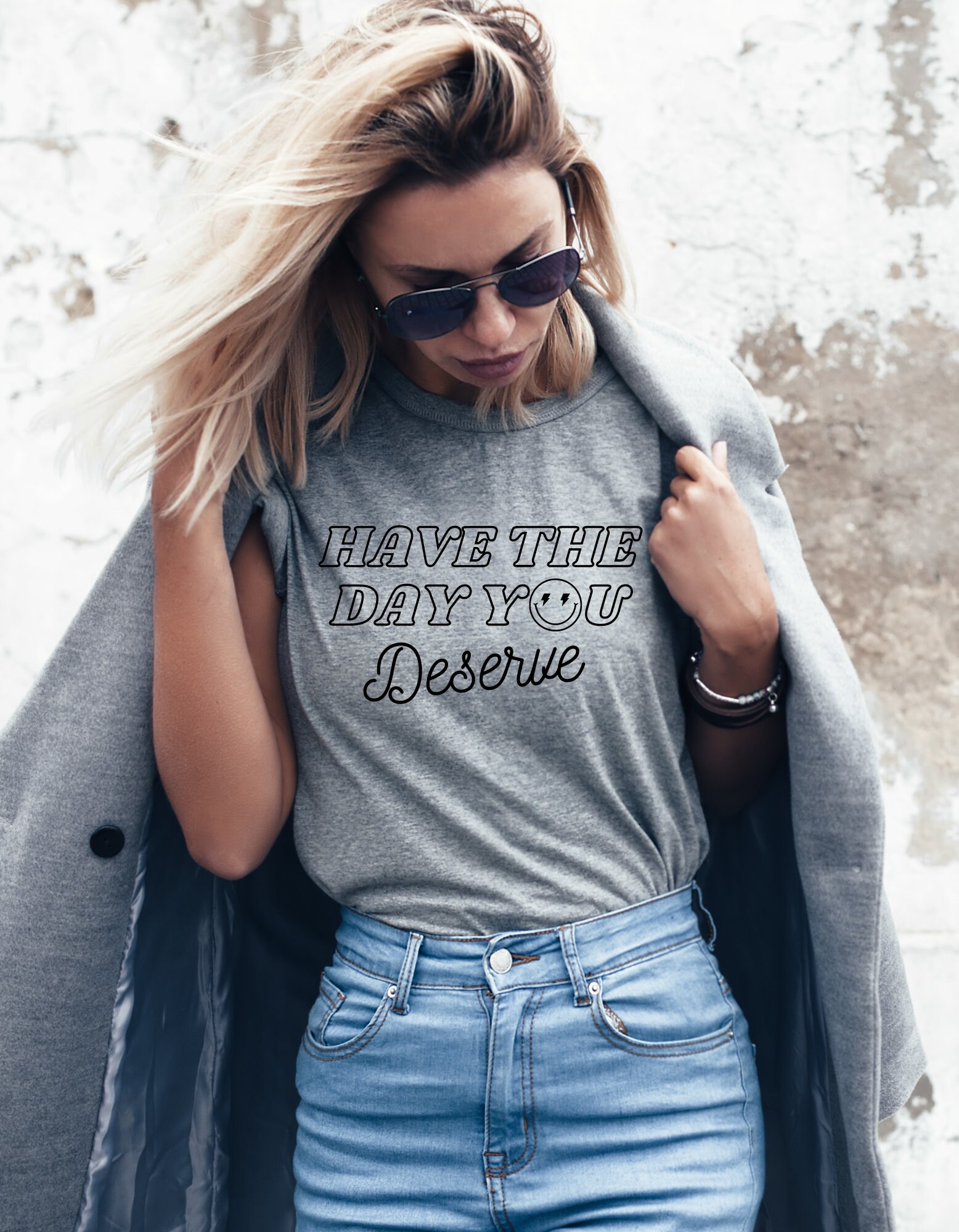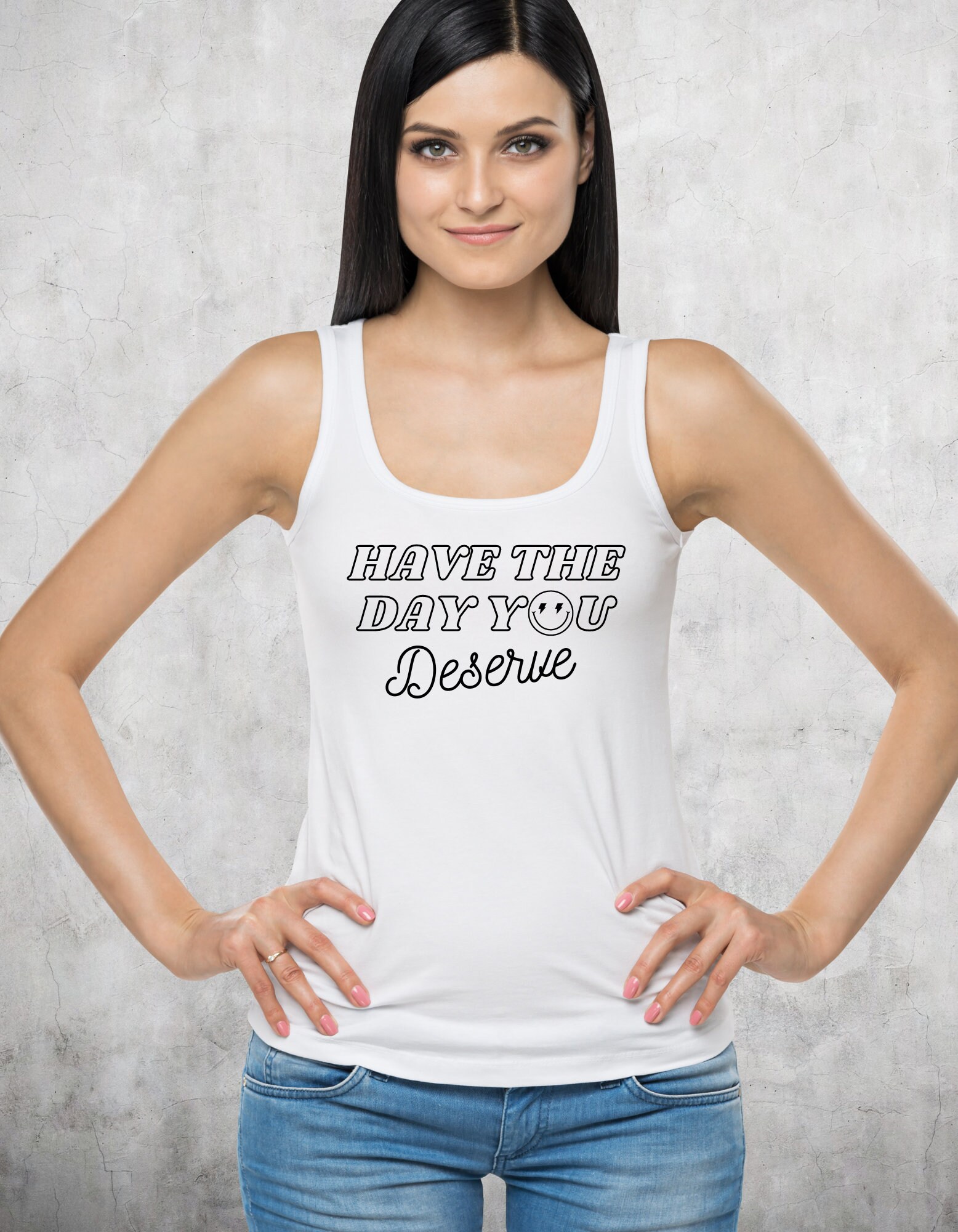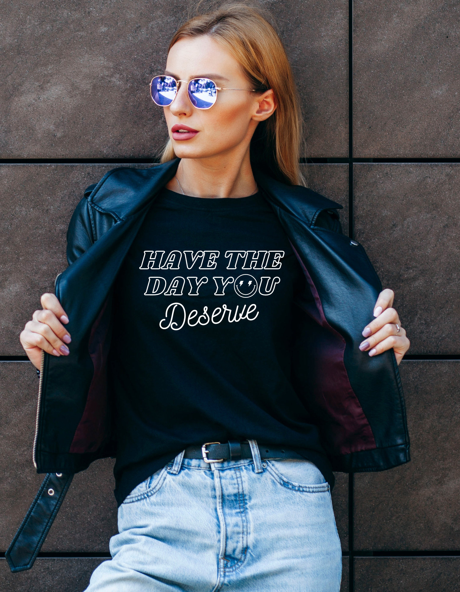 Have the day you deserve T-shirts, positive quote shirt for all the family ~ Youth Toddler Women's and Unisex. Smile face replacing the "O" with lighting bolts 🙂⚡