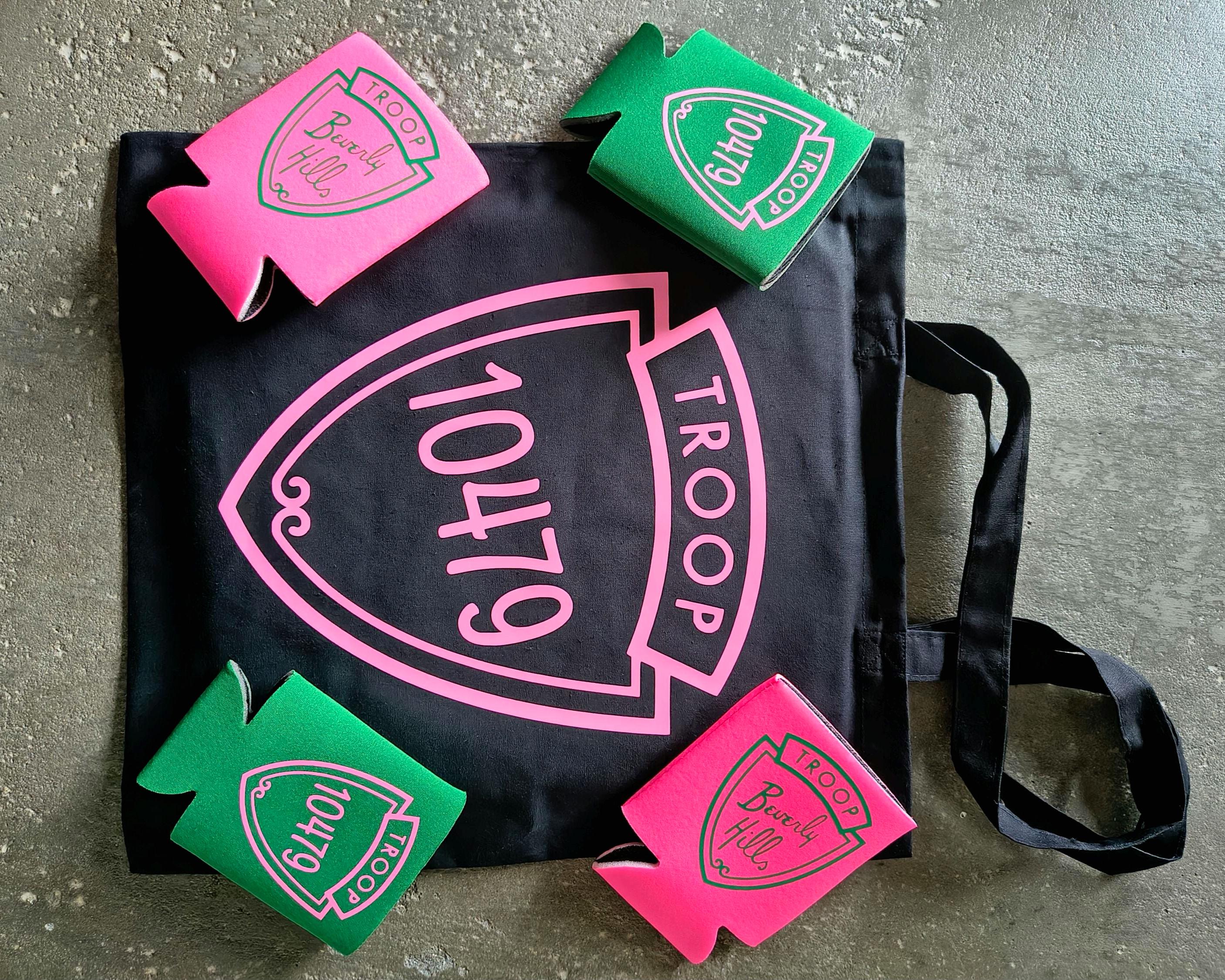 *** Pink and Green Koozies and Matching Canvas Tote bags are now available.