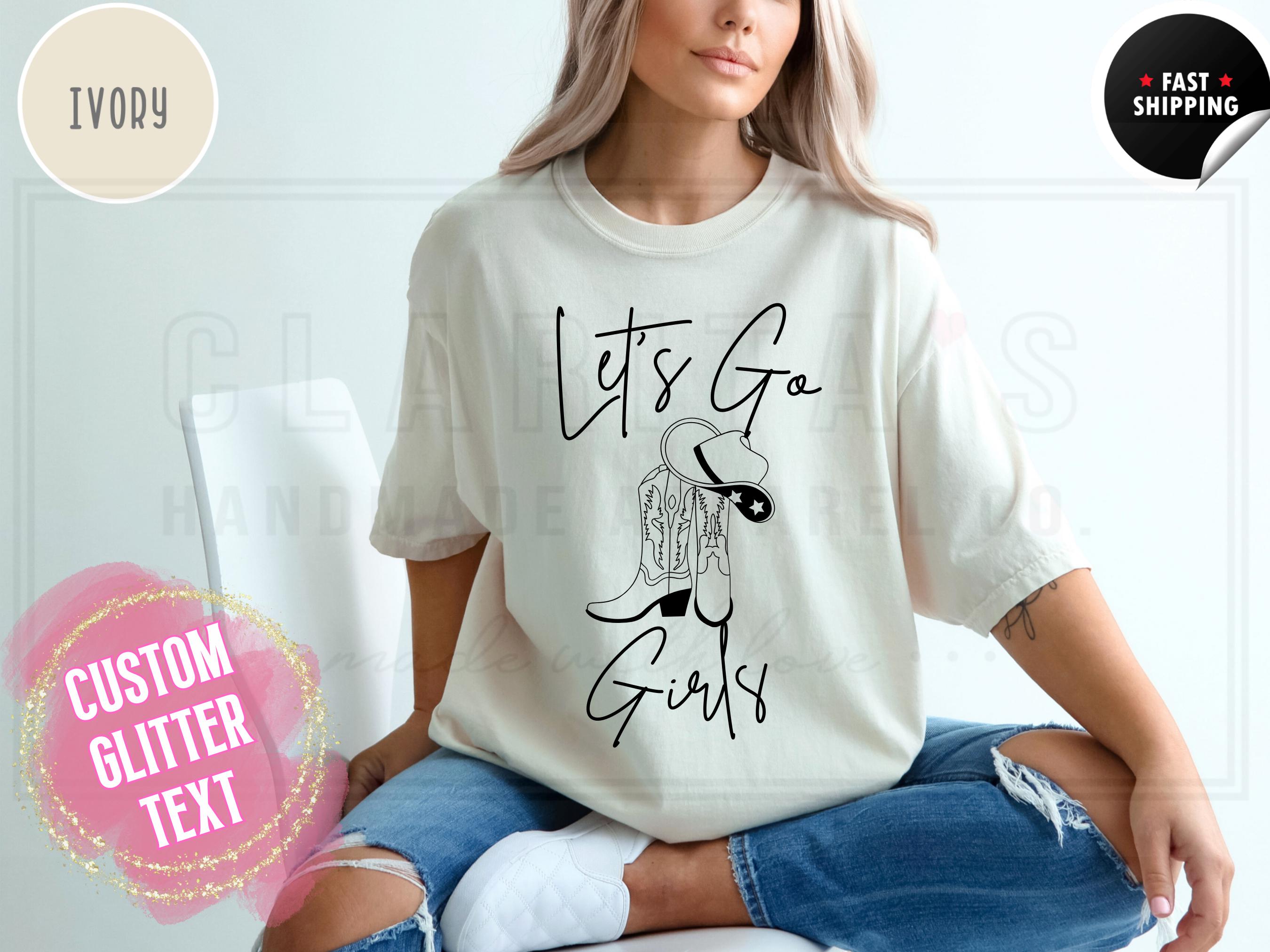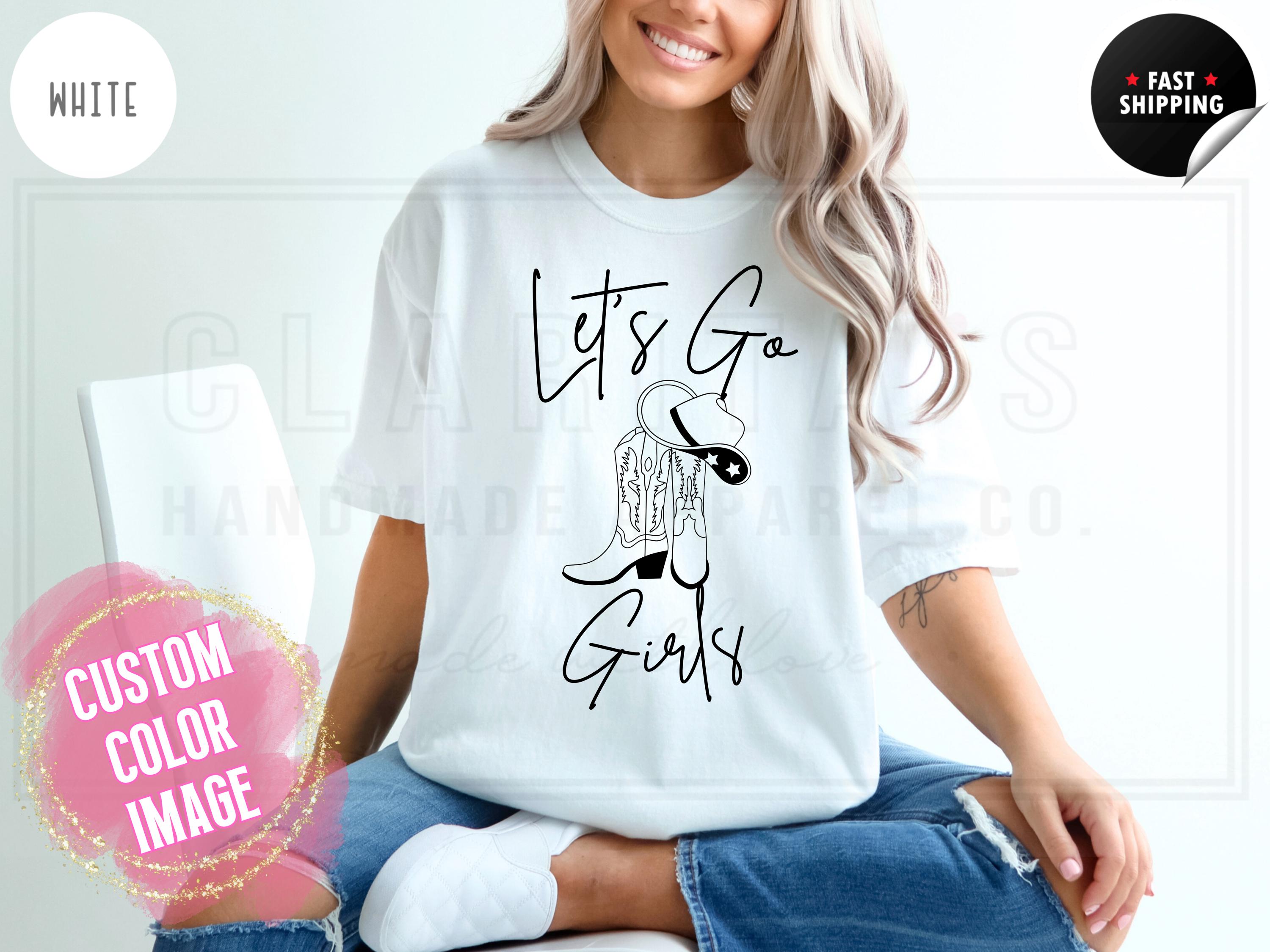Let's Go Girls Comfort Colors Bachelorette Party Shirt, With Cowgirl Hat & Boots, Fun Party Shirts for Women, Cute for Birthday Party, Music Festival, Bachelorette Parties and more💃🥂❤