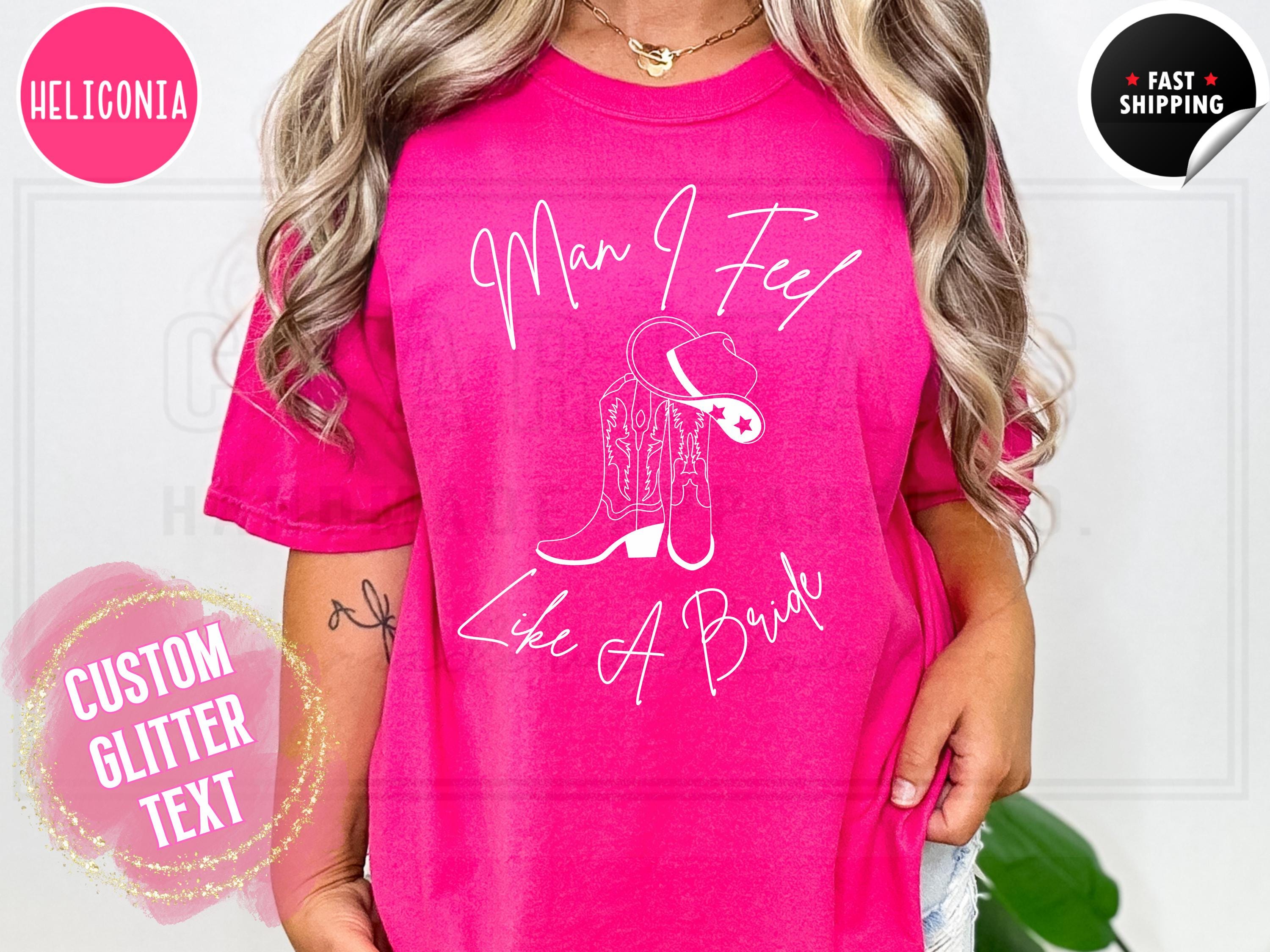 Let's Go Girls, Man I Feel Like a Bride Comfort Colors Nashville Bachelorette Party Shirts for Women, Cowgirl Hat & Boots Bridal Party Shirt 💃🥂❤