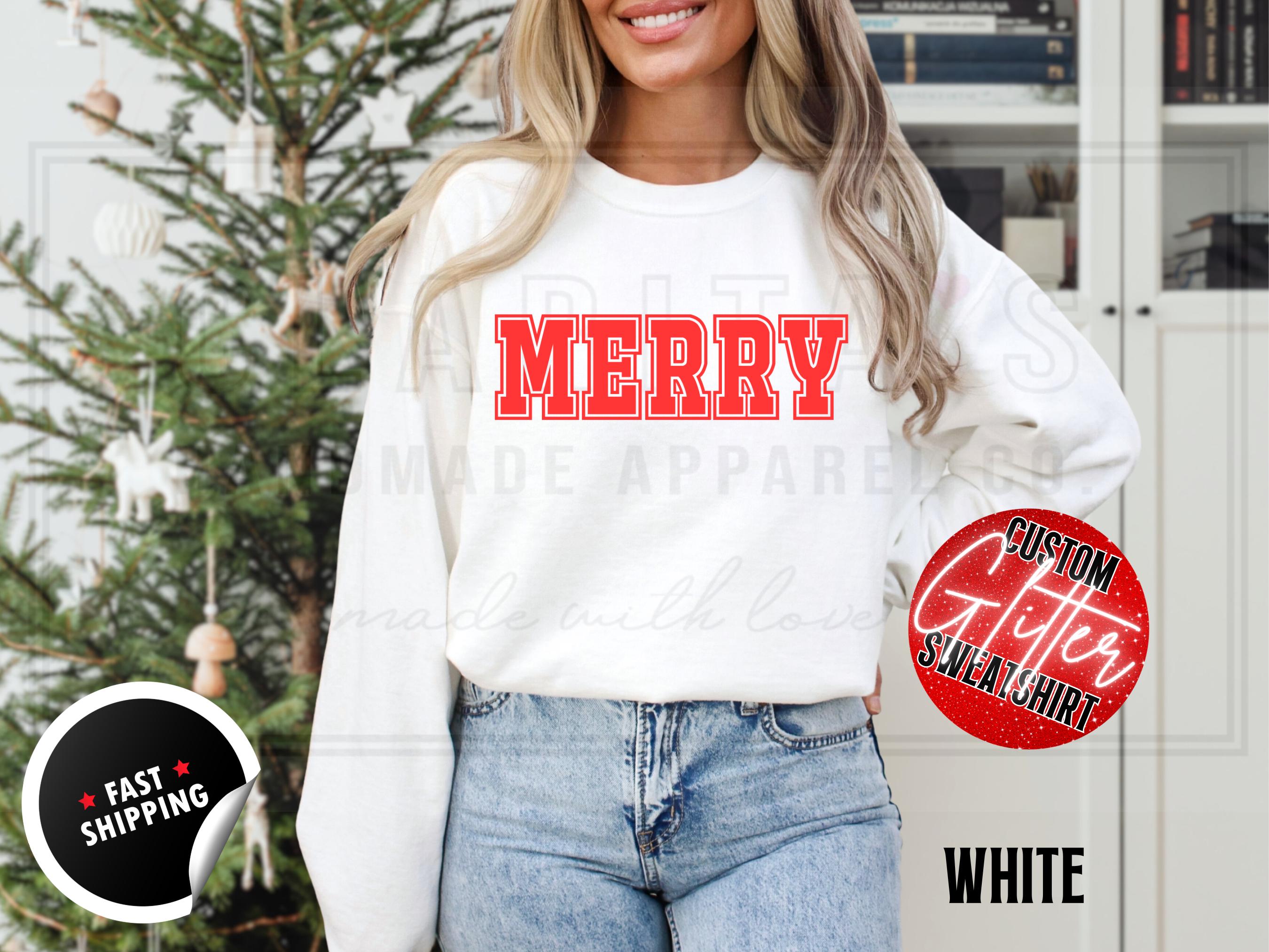 Custom Glitter Merry Christmas Sweatshirt: Holiday Crewneck Sweater
