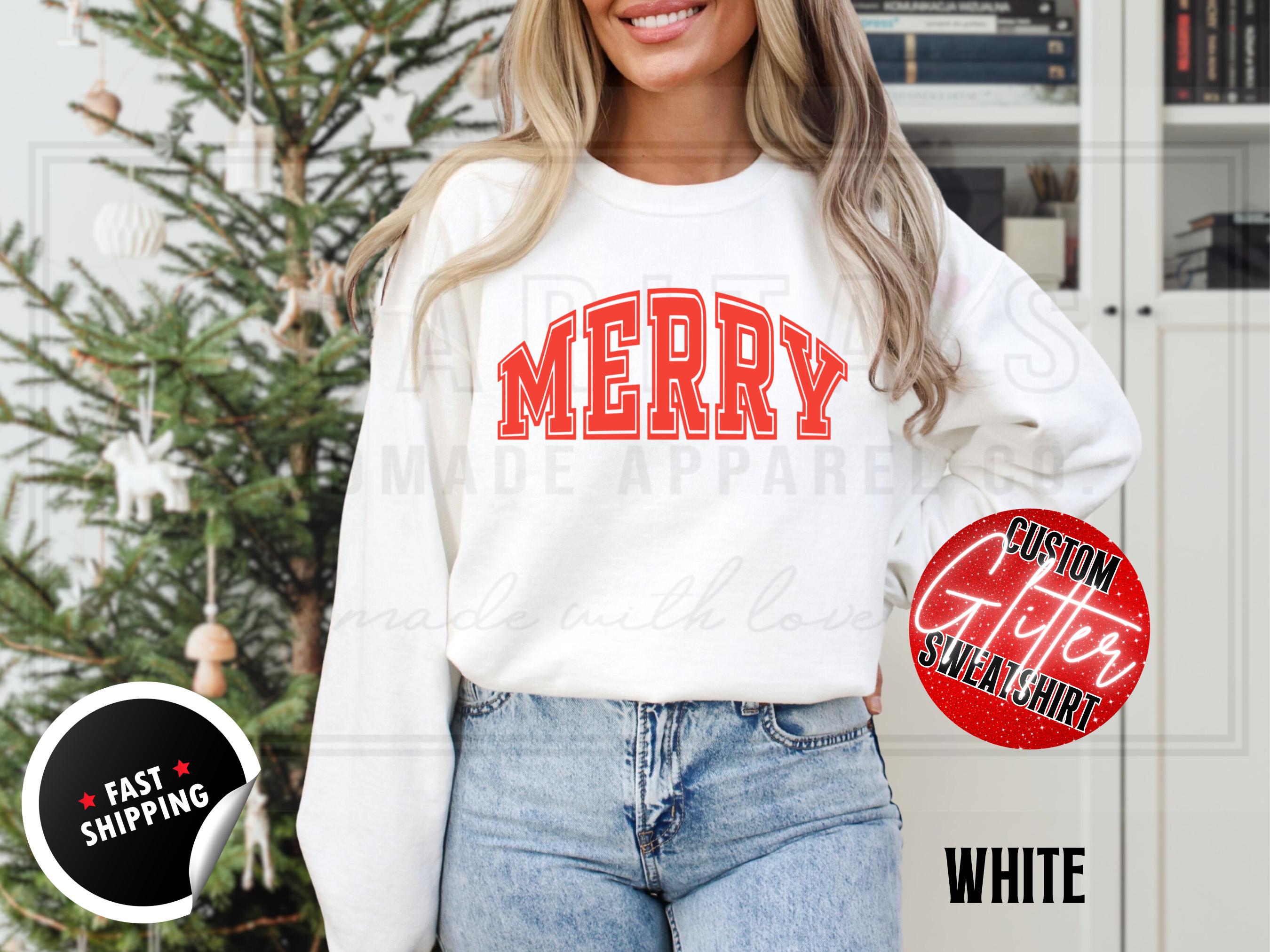 Custom Glitter Merry Christmas Sweatshirt, Christmas Shirts, Cute Winter Sweater, Christmas Shirt for Women, Christmas Crewneck Sweatshirt, Holiday Sweater🎄❤