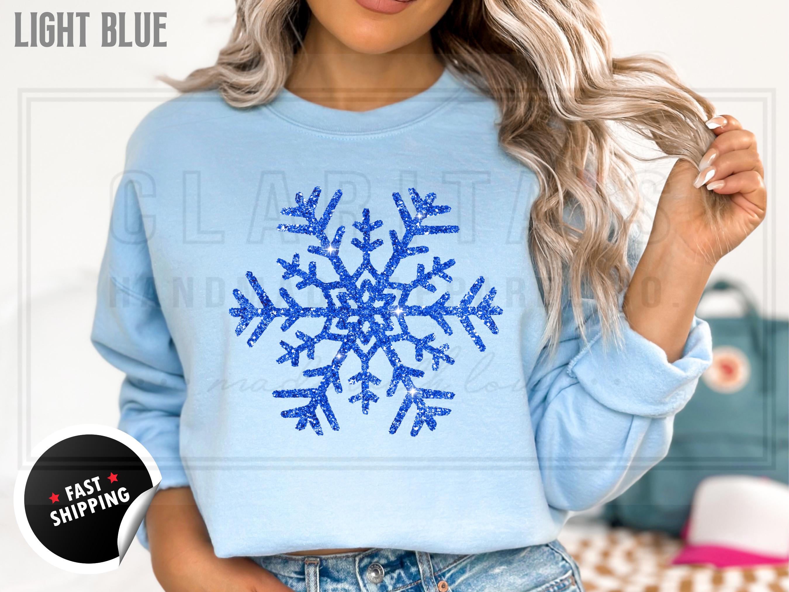Women's Custom Glitter Snowflake Christmas Sweatshirt: Sparkling Holiday Crewneck Sweater for Women