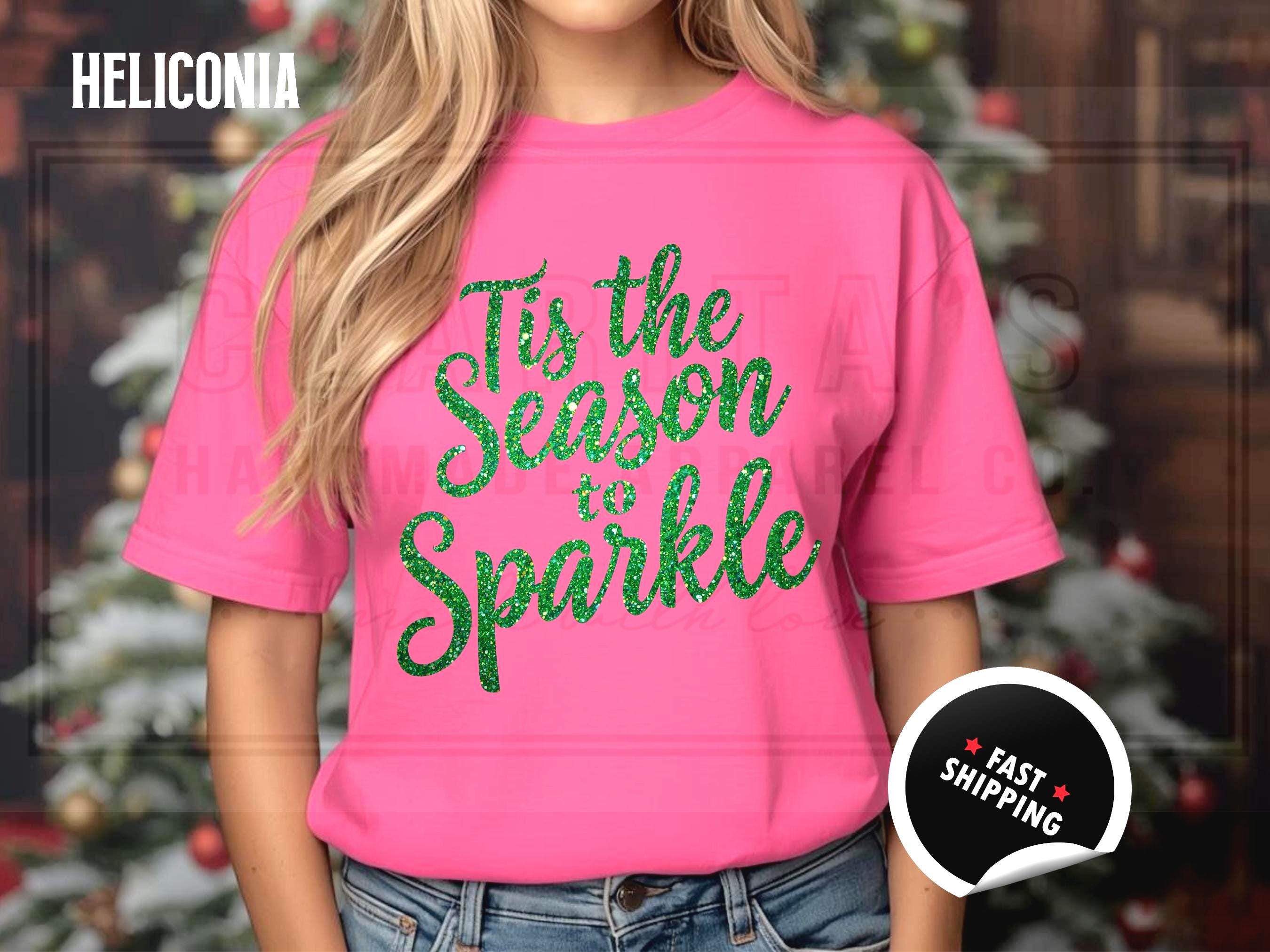 Glitter Christmas Sweatshirt and T-Shirts: Custom 'Tis the Season to Sparkle' Holiday Sweater. Custom Color Sparkling Festive Shirts