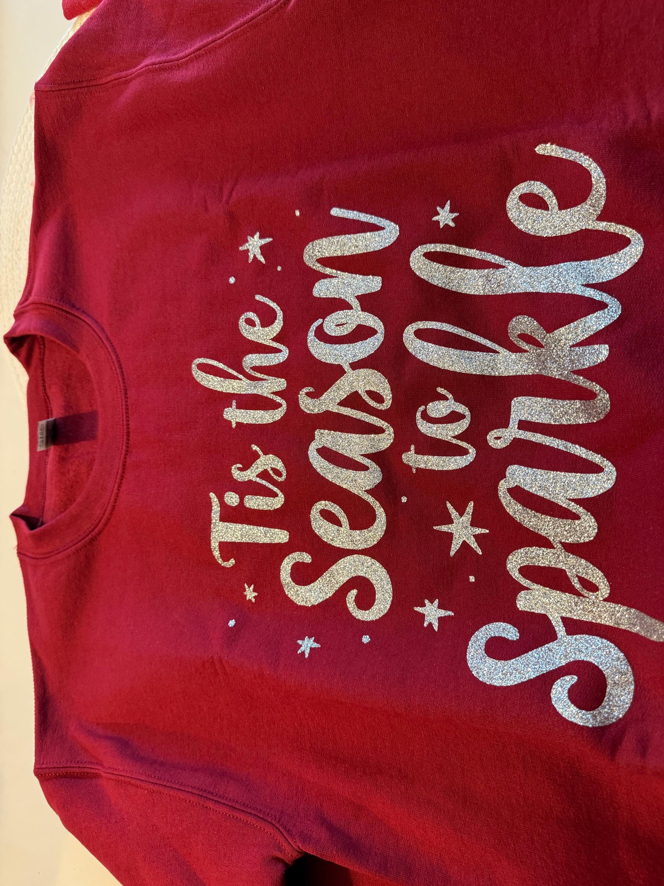 Cute Oversized Christmas Sweatshirts and T-Shirts ~ 'Tis the Season to Sparkle' Shirts with large glitter print. Comfy cozy and soft shirts for these winter nights, makes a wonderful gift for this magical holiday season ❄ ❤