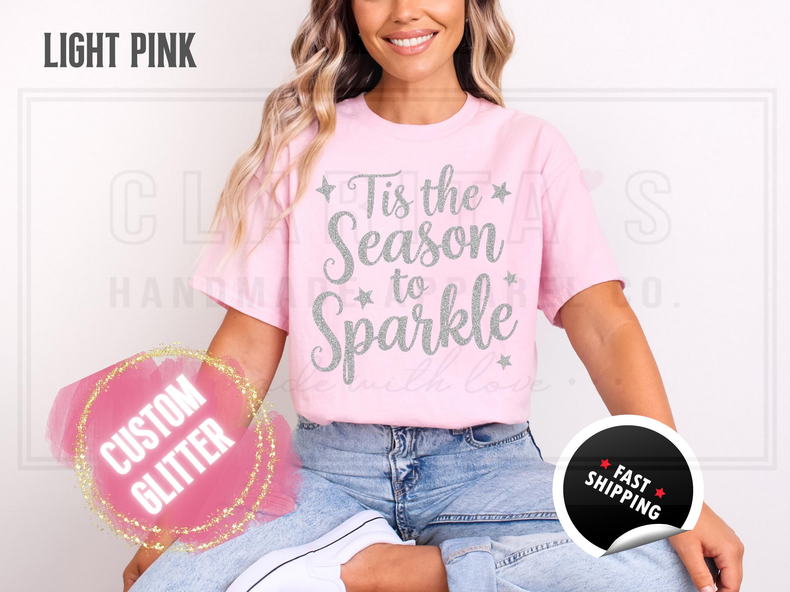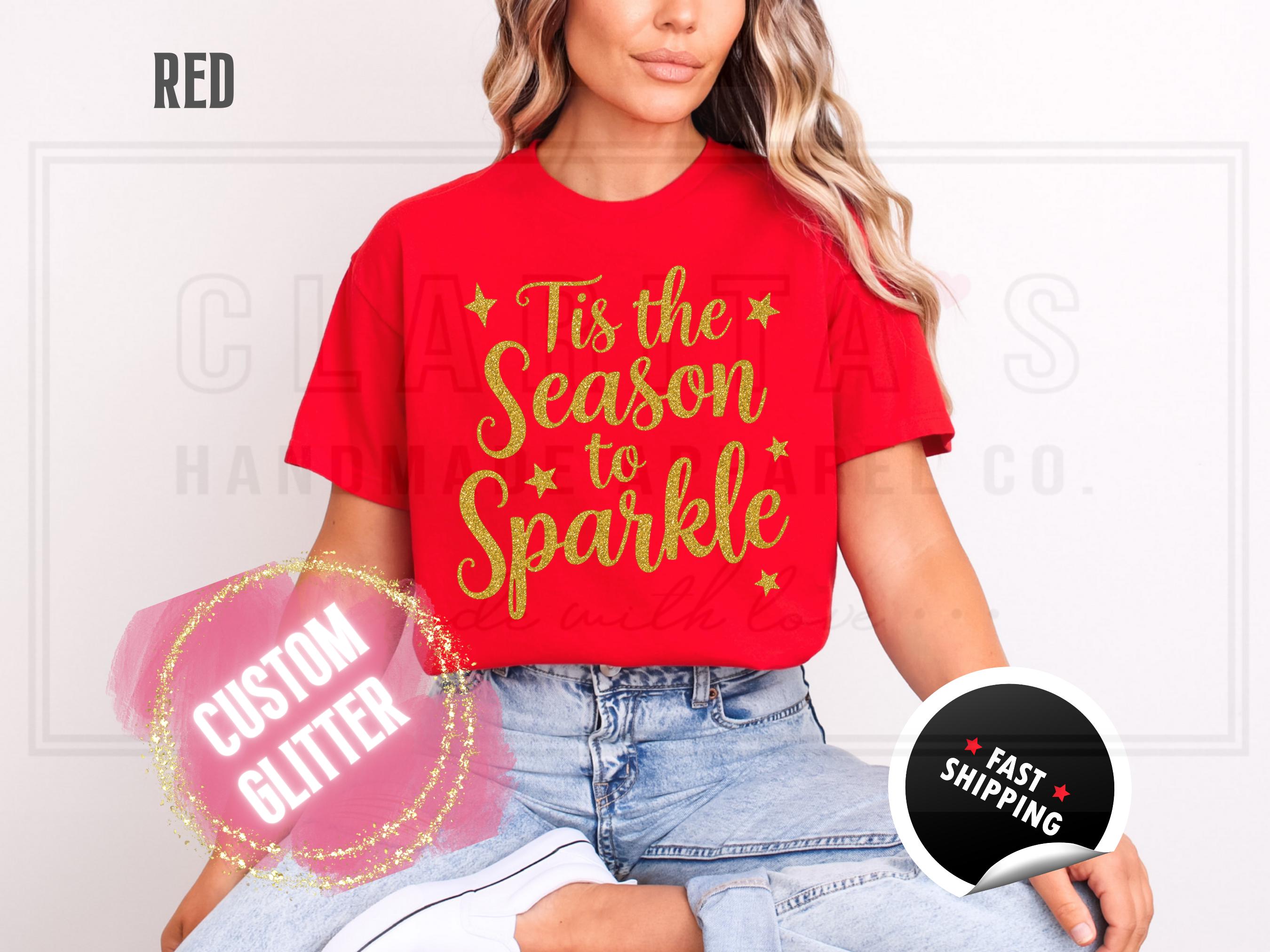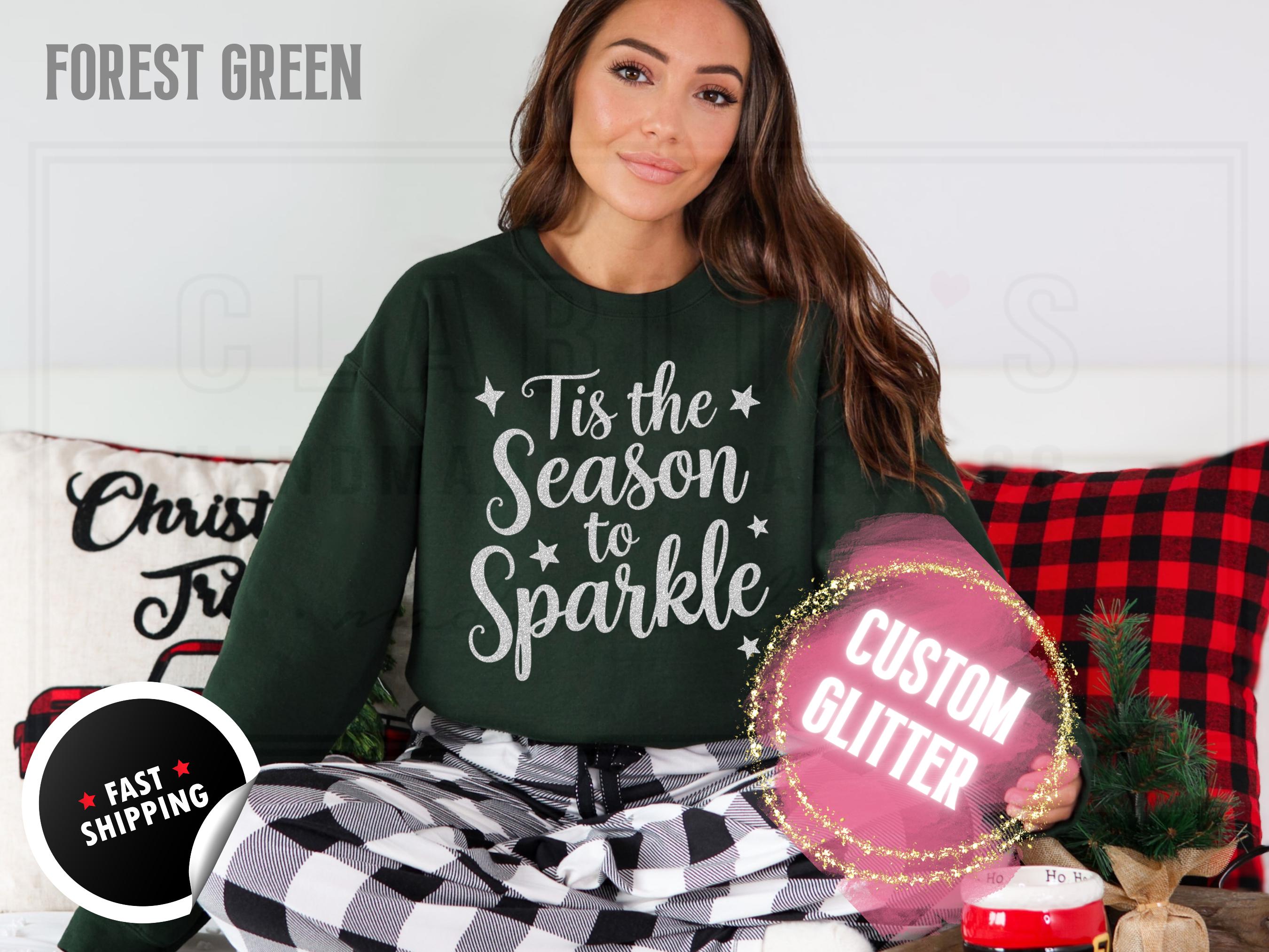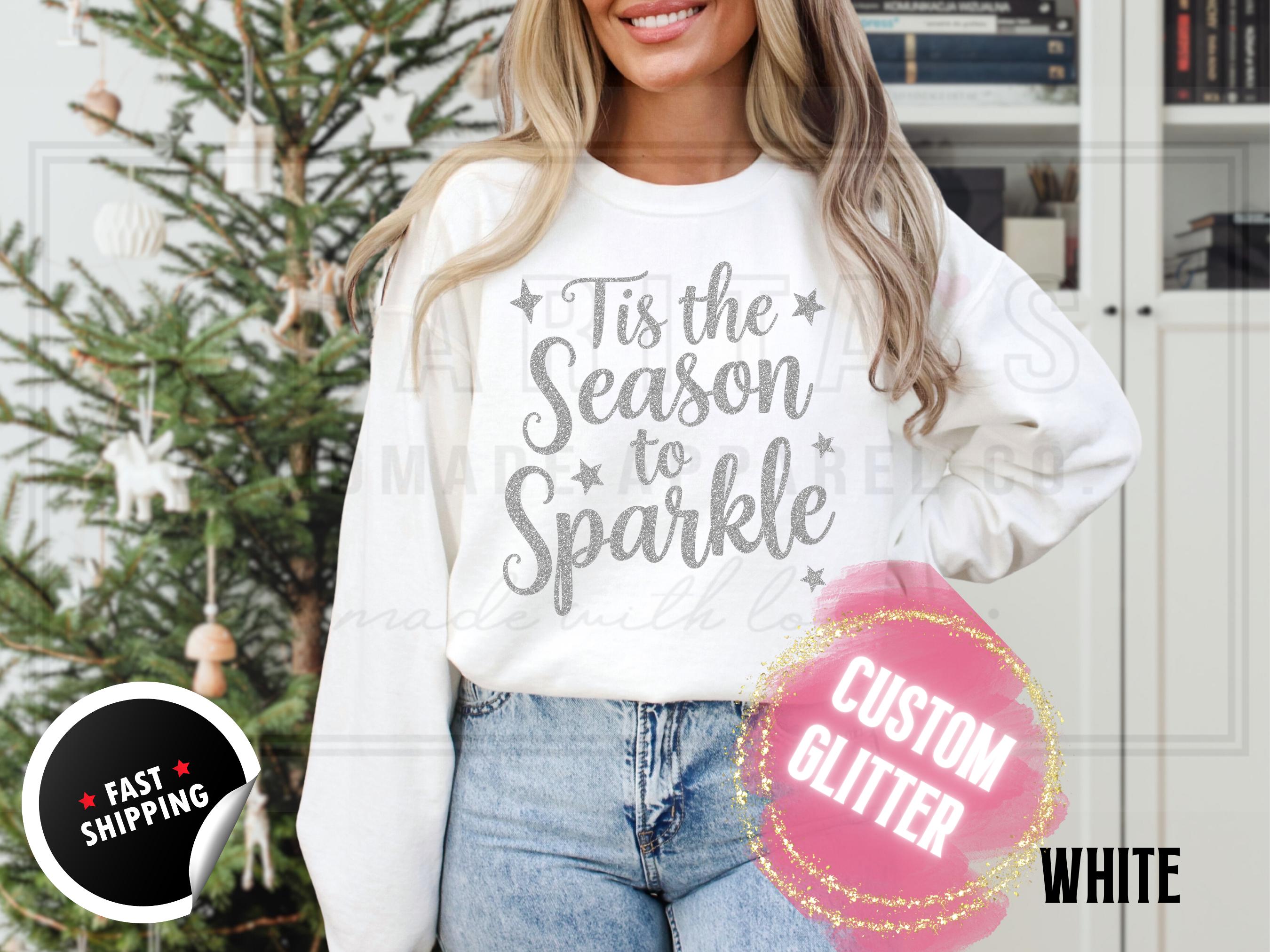 Glitter Christmas Sweatshirt and T-Shirts: Custom 'Tis the Season to Sparkle' Holiday Sweater. Custom Color Sparkling Festive Shirts