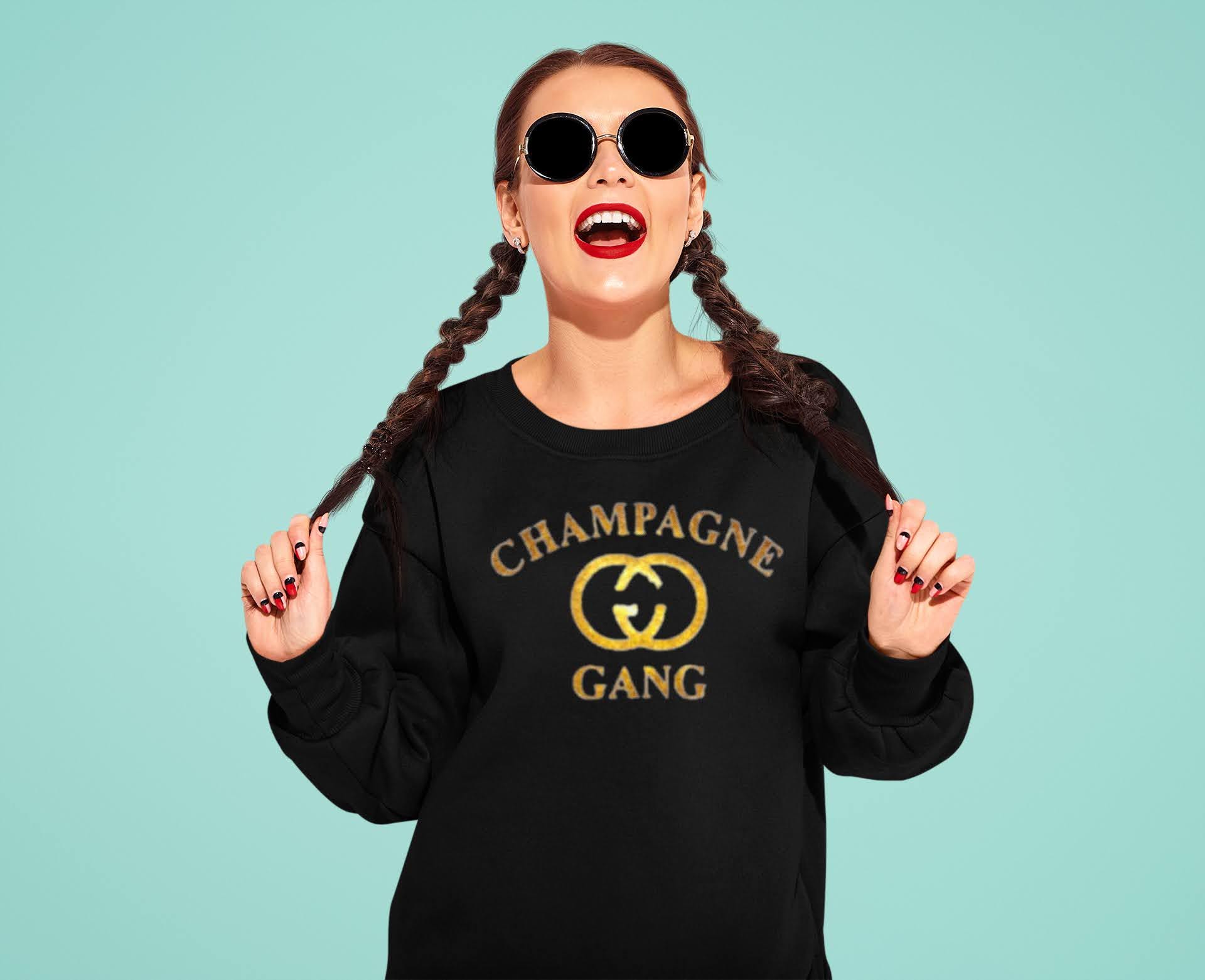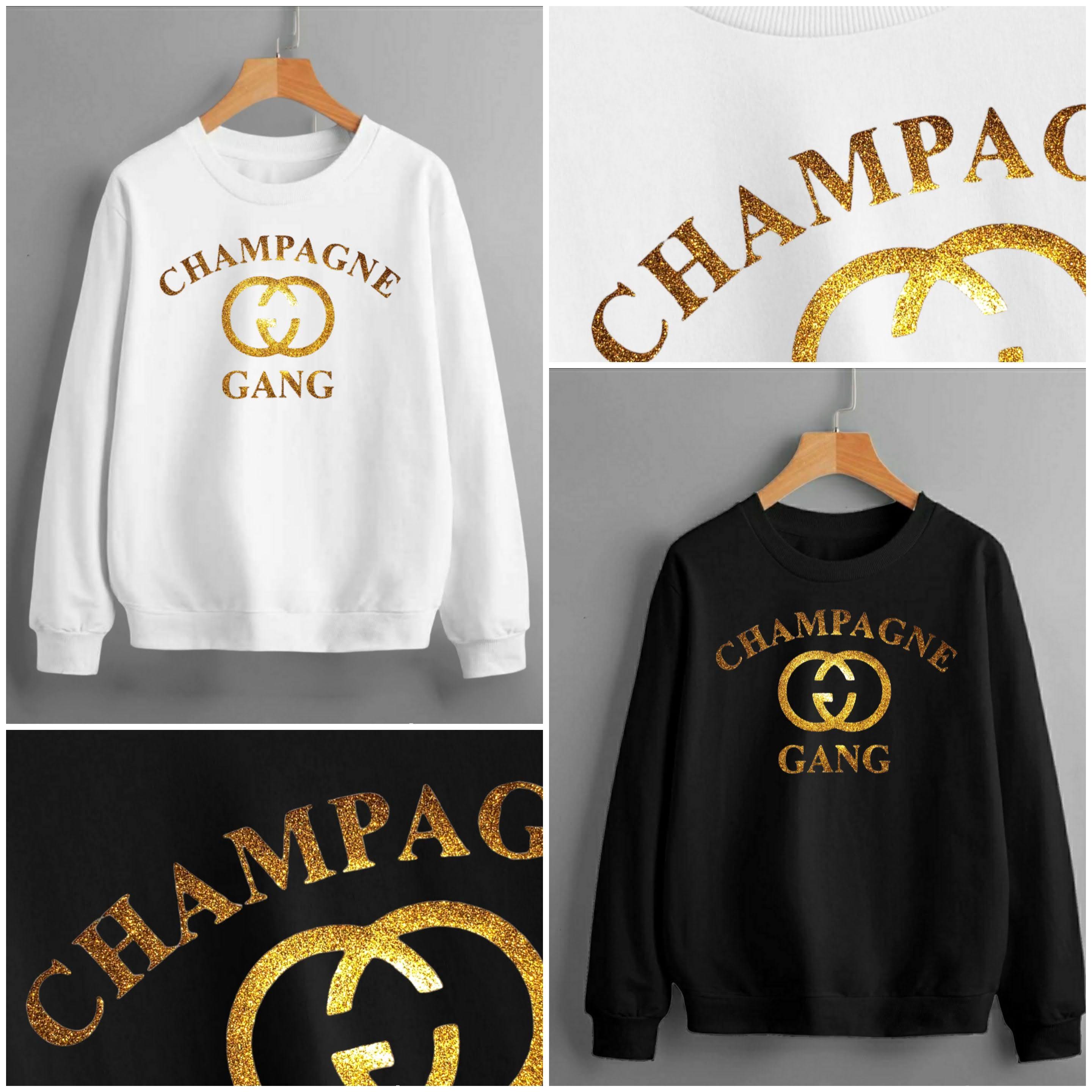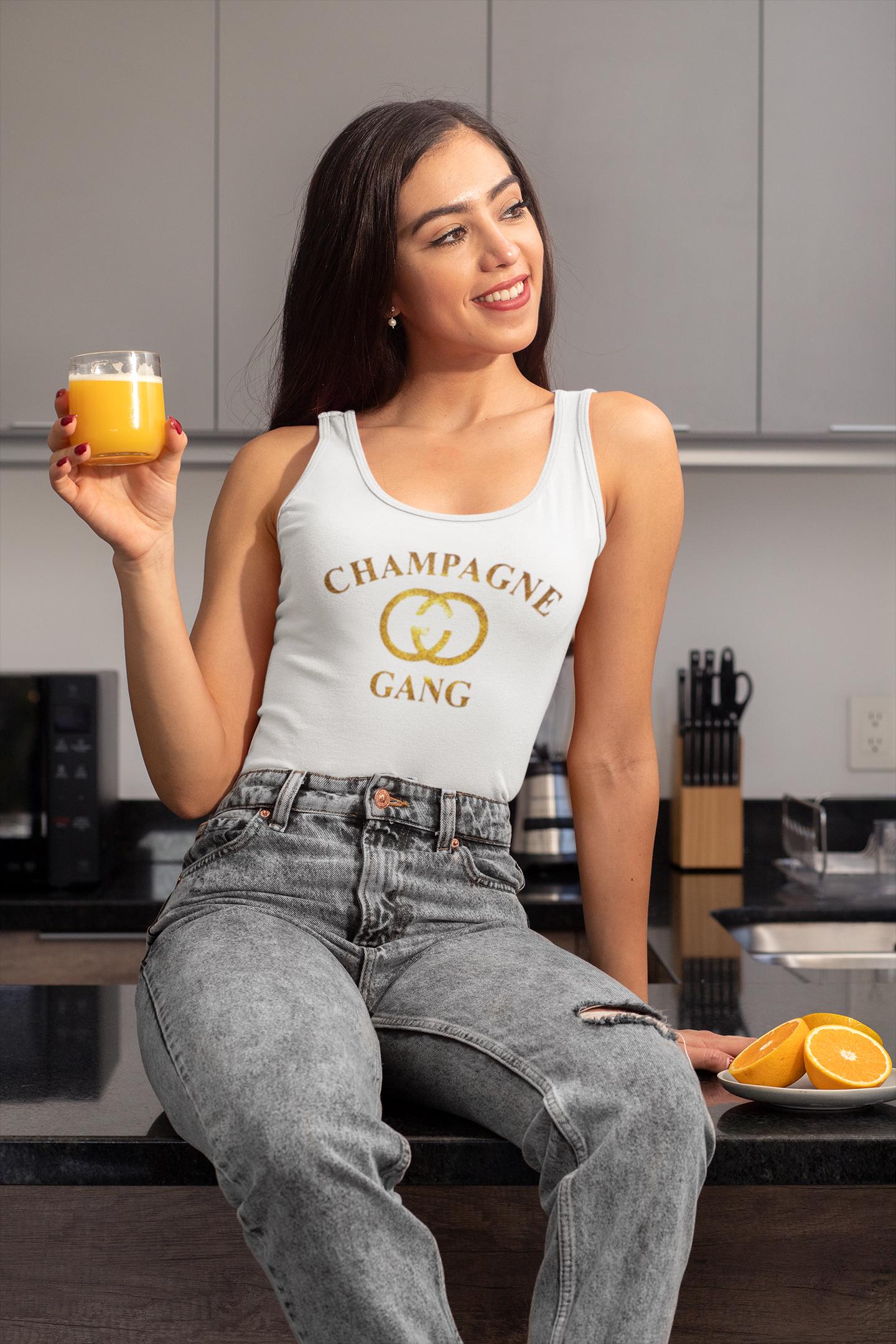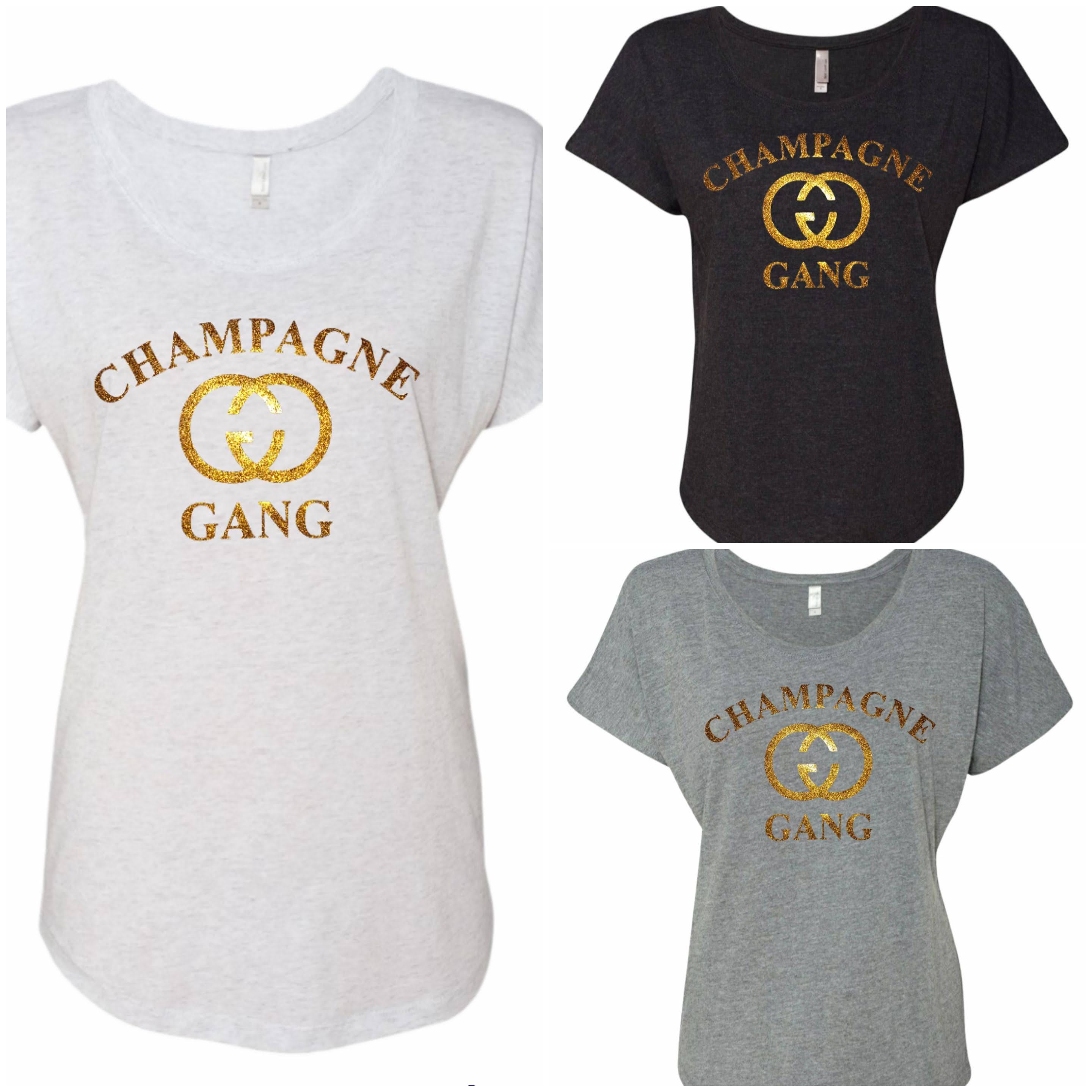 These beautiful, champagne gang shirts come in many different styles. Champagne Gang is in a beautiful gold glitter font ✨ all us ladies love our sparkles, these shirts will certainly give you the perfect shine and make your day that much brighter ❤